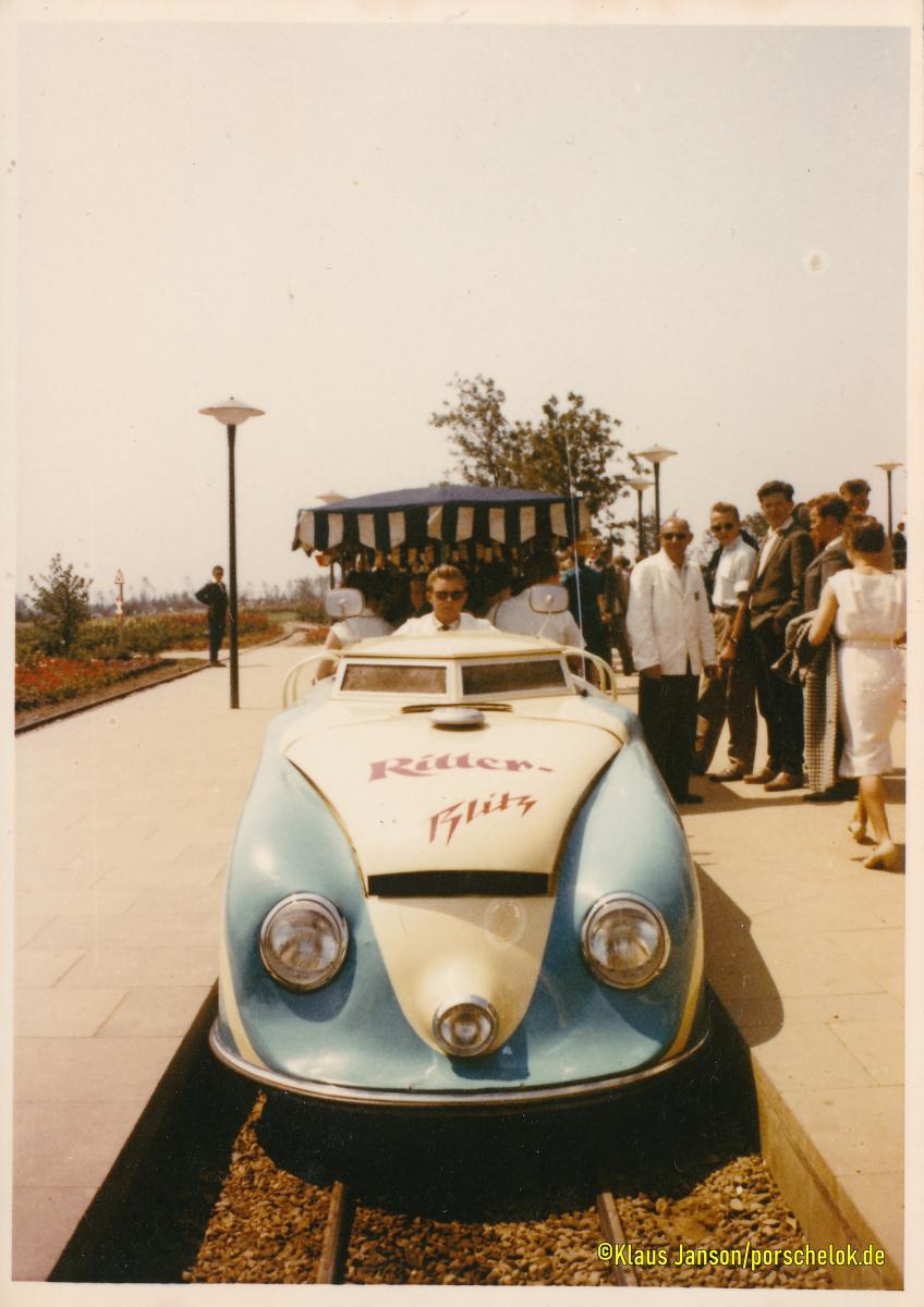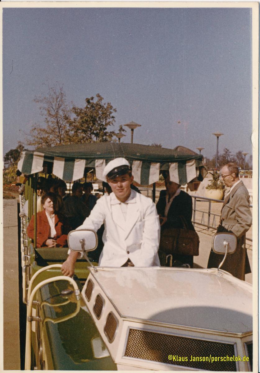 Sammlung porschelok.de Fotos Klaus Janson: Dortmund 1959 Klaus Janson war 1959 Fahrer bei der Bundesgartenschau in Dortmund und war Stammfahrer des blauen Zugs Nummer 1. [HS]